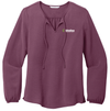 A fresh neckline with tie gives this comfortably flowy blouse a sophisticated look.