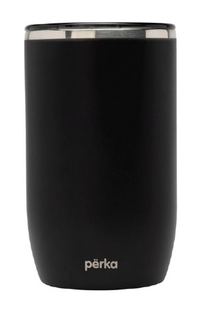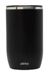 Perka Ransom Tumbler has a modern and sleek design with an elegantly slim polished top ring and smoky translucent lid. Perfect for home, office or your morning commute, this tumbler holds 13 oz. of your favorite beverage and both the inner and outer walls are made from 18/8 grade stainless steel. Its double wall vacuum insulated construction and the copper lining keep your hot drink hot for 12 hours and cold drink cold for 24 hours. It also features a translucent push-in lid with a spill-proof slider closure to keep your drink safe and clean and its exterior powder coat finish is durable and sweat proof. The Ransom fits in most car cup holders and standard coffee machines and is BPA Free and FDA Compliant. 3 1/8" W x 5 3/8" H x 3 1/4" D