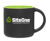 The Minolo 14 oz ceramic mug pairs modern contrast with everyday functionality. It features a matte black exterior and a glossy colored interior for a bold, two-tone look. Ideal for coffee, tea, or cocoa, it’s perfect for the office, home, or branded gifting.